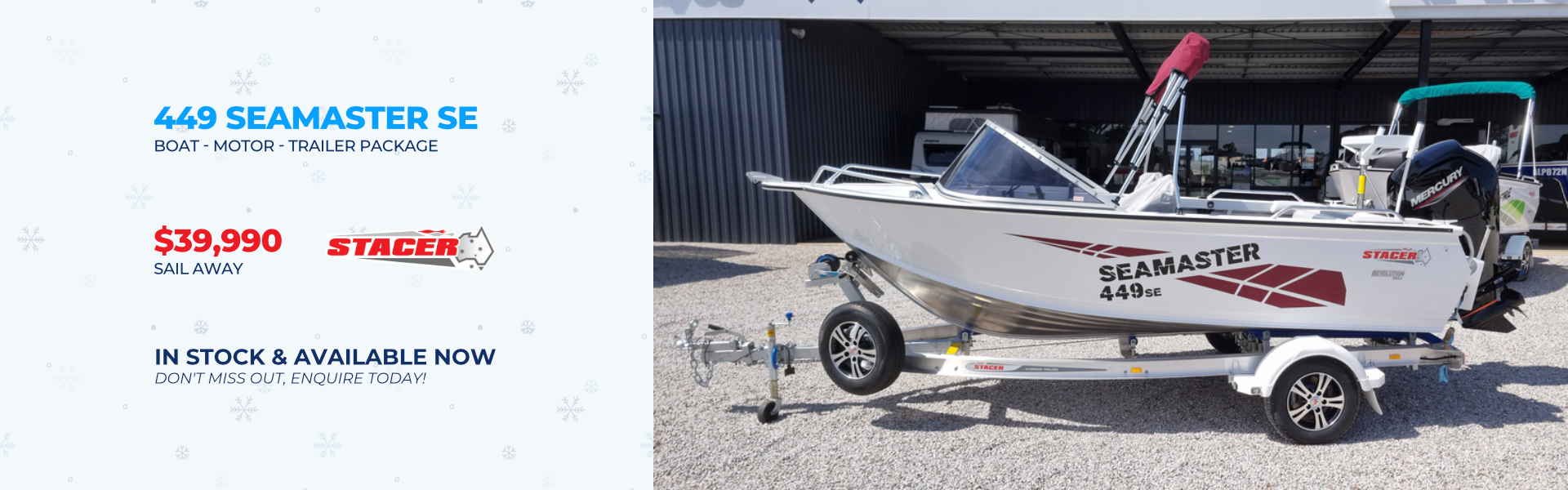 Your journey with Marine Centre Dubbo begins at Work Rest Play Here. We are your dealer of Marine products in the greater western NSW region. We stock an extensive range of Stacer boats, Yamaha and Mercury outboard motors, Move boat trailer and boat packages.